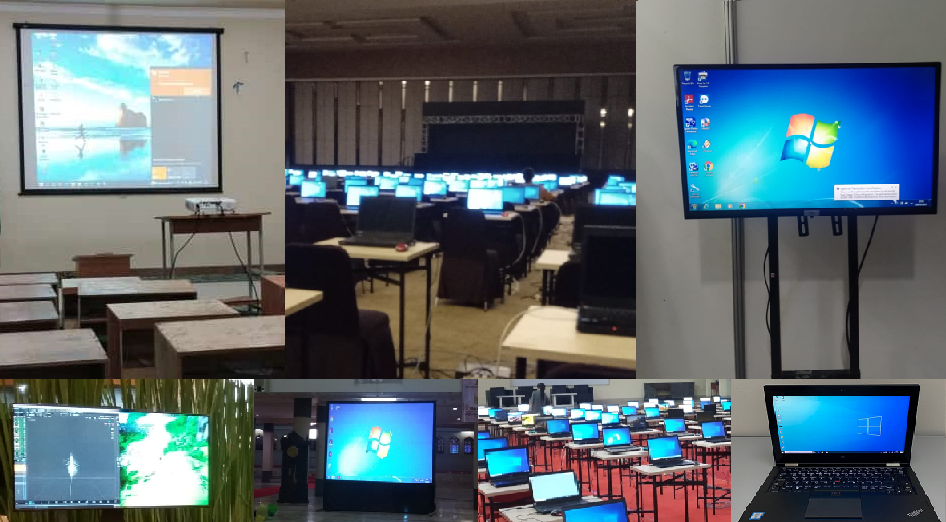 Kami menyediakan peralatan berupa: notebook/laptop, proyektor (infocus), LCD monitor dan printer untuk disewakan pada instansi atau perusahaan untuk menunjang kegiatan kerja sehari-hari, workshop, seminar, pelatihan, pameran atau test penerimaan siswa atau pegawai, dll.